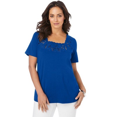 Jessica London Stretch Cotton Horseshoe Neck Tank - 12, Dark Sapphire