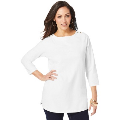Jessica London Stretch Cotton Horseshoe Neck Tank - 30/32, White