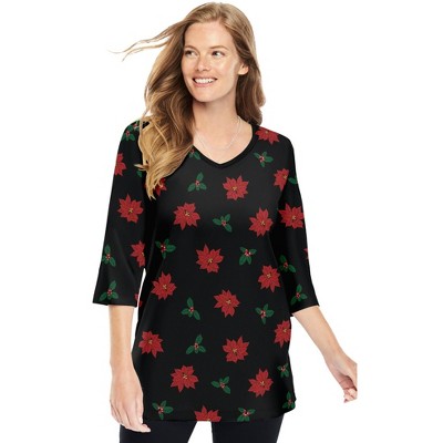 The Jessica London women's plus size Stretch Cotton Scoop Neck Tee is the perfect way to top off any look with three-quarter sleeves for season-spanning style. The straight silhouette offers a polished and figure-flattering look that eases over dress pants, skirt, jeans and capris.