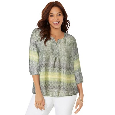 Jessica London Stretch Cotton Square Neck Tee - 12, Dark Lime Layered Flowers