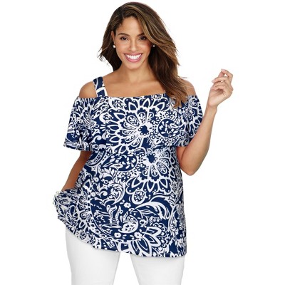 Jessica London Stretch Cotton Square Neck Tee - 26/28, Navy Paisley