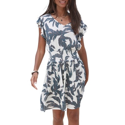 Flared graphic leaf dress