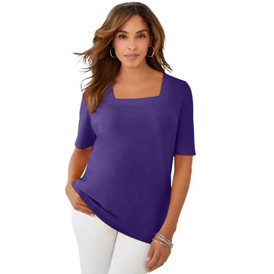 A comfortable scoopneck silhouette in a flattering longer length.