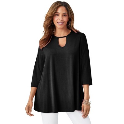 The Jessica London women's plus size Stretch Knit Swing Tunic is a season-spanning knit top with an easy, relaxed silhouette and three-quarter sleeves.