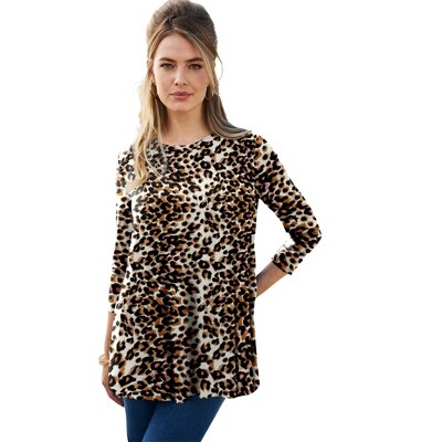 The Jessica London women's plus size Stretch Knit Swing Tunic is a season-spanning knit top with an easy, relaxed silhouette and three-quarter sleeves.