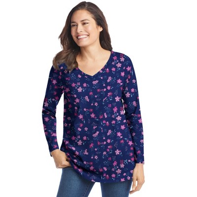 Jessica London Stretch Knit Swing Tunic - 42/44, Navy Dot Paisley