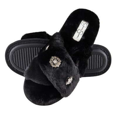 Jessica Simpson Women's Indoor/Outdoor Plush Bejeweled Slip-On Scuff Slippers - Black/Extra Large