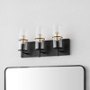 Illuminate your space with the jester 3 light wall sconce. Measuring 19 inches, this stunning piece combines black iron with sleek glass to create a visual masterpiece. Its versatile design allows it to complement both contemporary and classic decor. The iron frame provides robust support while the glass shades offer a clear and bright illumination. This wall sconce is perfect for enhancing the ambiance in living rooms, hallways, and bedrooms. Whether you're having a gathering or enjoying a quiet evening at home, the jester wall sconce adds a touch of elegance and sophistication. Bring a modern yet timeless charm to your interiors with this exquisite lighting solution.