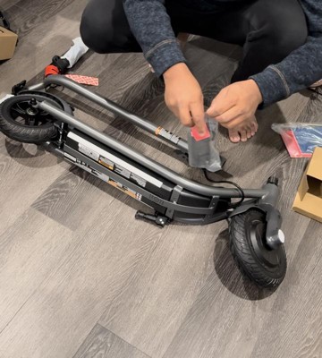 This scooter is great! So much more than I expected. It’s easy to assemble and even easier to use. Assembly out of the box could not have taken more than 3 minutes. And it came with what seemed like about a half of a charge so I was able to test it out right away! It’s a smooth ride and the different speed features are great. And then the lights! They are super bright which not only look cool but will make me feel safer if I ride at night. It’ll also be easy to travel with because of the folding feature.