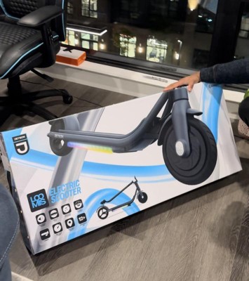 The Jetson Loomis Electric Scooter doesn’t just take you places – it takes you there in your own style. The dynamic LED lights under the deck can be set in any of 5 different color modes. Start streaming your favorite songs through the scooter’s integrated Bluetooth speaker, and watch those lights pulse in sync to the beat of your soundtrack. Whether you’re zipping around campus, cruising around the neighborhood, or headed into town – your ride will always have just the right energy. Use the thumb throttle, e-brake, and 3 speed settings to control your pace – but should you want to fly, this scooter gets you going at up to 15 mph. Get up to 12 miles of distance before it’s time to recharge. The Loomis is recommended for riders ages 12 and up.