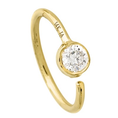 Jewelry Avalanche 14K Gold Bezel Princess Cut CZ Nose Hoop Ring, 20G, 8mm, Twist-open