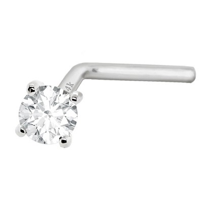 Expertly crafted from 14k gold, this 20g Nose screw ring stud features genuine round diamonds ranging from 1.5mm to 3mm in size. Sleek and stylish, this diamond nose ring adds a touch of elegance to your look while staying securely in place. Upgrade your accessory game with this real diamond stud. Nose Stud Details