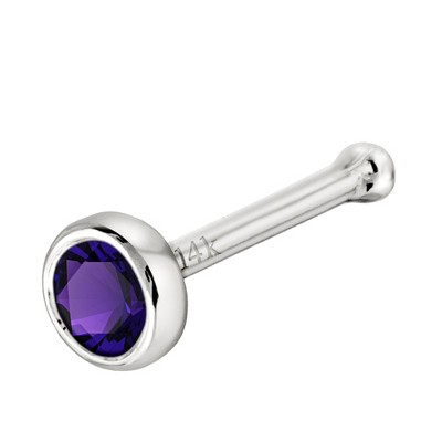 Jewelry Avalanche 22G 14K Gold Bezel-set Amethyst L-shape Nose Stud - 1 of 3