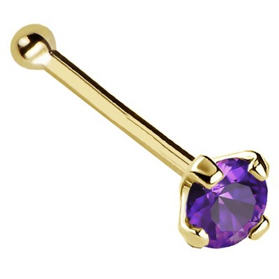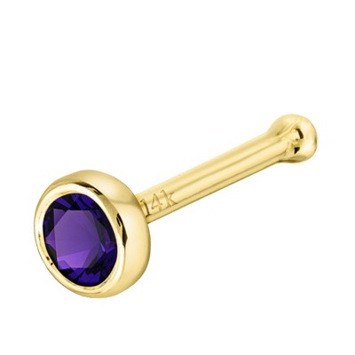 Jewelry Avalanche 22G 14K Gold Bezel-set Amethyst L-shape Nose Stud - 1 of 3