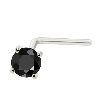 Expertly crafted from 14k gold, this 22g L-shape nose ring stud features bezel-set natural round Black Diamonds ranging from 1.5mm to 3mm in size. Sleek and stylish, this Black Diamond nose ring adds a touch of elegance to your look while staying securely in place. Upgrade your accessory game with this Bezel-set Black Diamond stud. April birthstone nose stud, a perfect gift for yourself or a loved one Nose Stud Details