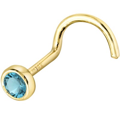 Expertly crafted from 14k gold, this 22g L-shape nose ring stud features bezel-set natural round Blue Topazs ranging from 1.5mm to 3mm in size. Sleek and stylish, this Blue Topaz nose ring adds a touch of elegance to your look while staying securely in place. Upgrade your accessory game with this Bezel-set Blue Topaz stud. December birthstone nose stud, a perfect gift for yourself or a loved one