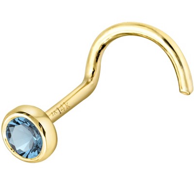 Jewelry Avalanche 22G 14K Gold Bezel-set Blue Topaz Nose Screw Nose Stud Yellow Gold 2.5mm