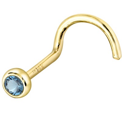 Jewelry Avalanche 22G 14K Gold Bezel-set Blue Topaz Nose Screw Nose Stud - 1 of 3
