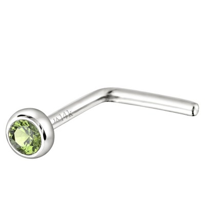 Jewelry Avalanche 22G 14K Gold Bezel-set Emerald L-shape Nose Stud - 1 of 3