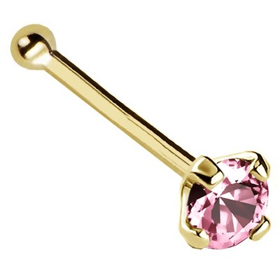Jewelry Avalanche 22G 14K Gold Bezel-set Pink Tourmaline L-shape Nose Stud Yellow Gold 2.5mm
