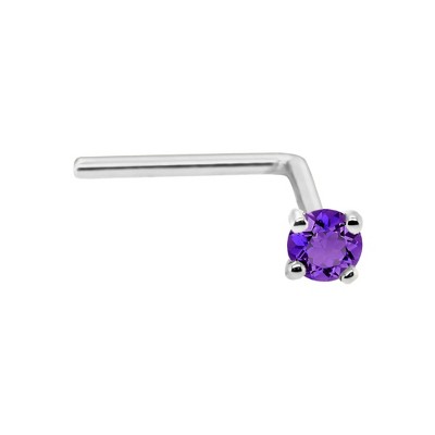 Jewelry Avalanche 22G 14K Gold L-shape Nose Stud with Alexandrite Gemstone