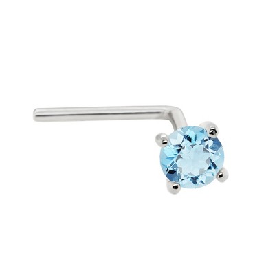 Jewelry Avalanche 22G 14K Gold L-shape Nose Stud with Aquamarine Gemstone White Gold 3mm