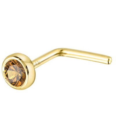 Jewelry Avalanche 22G 14K Gold L-shape Nose Stud with Citrine Gemstone