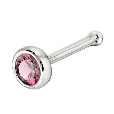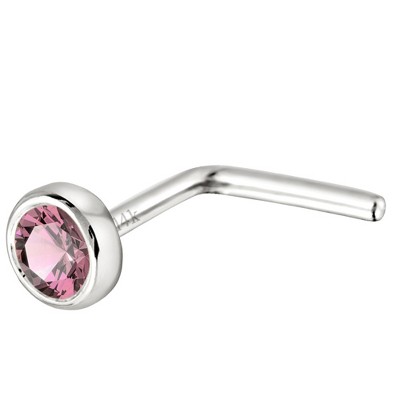 Jewelry Avalanche 22G 14K Gold L-shape Nose Stud with Pink Tourmaline Gemstone White Gold 3mm
