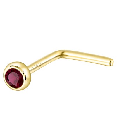 Expertly crafted from 14k gold, this 22g L-shape nose ring stud features natural round Rubies ranging from 1.5mm to 3mm in size. Sleek and stylish, this Ruby nose ring adds a touch of elegance to your look while staying securely in place. Upgrade your accessory game with this Ruby stud. July birthstone nose stud, a perfect gift for yourself or a loved one