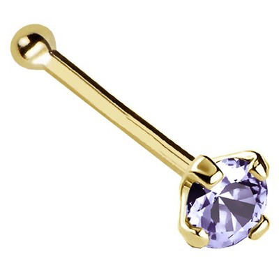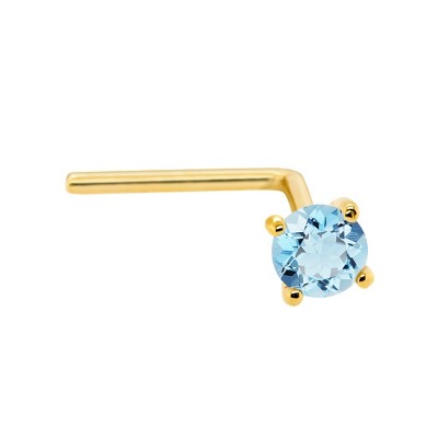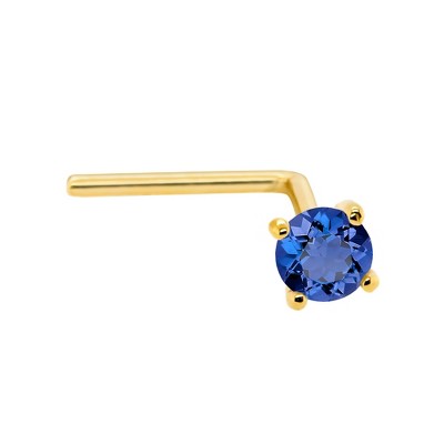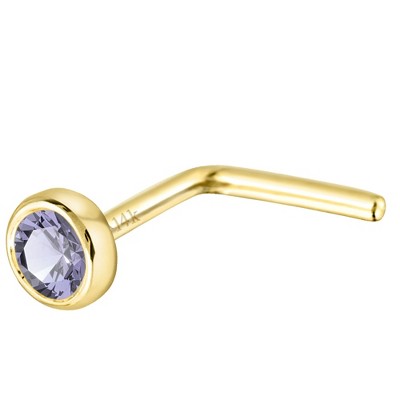Jewelry Avalanche 22G 14K Gold L-shape Nose Stud with Tanzanite Gemstone Yellow Gold 2.5mm