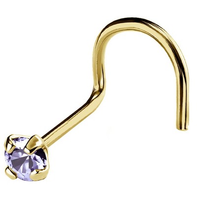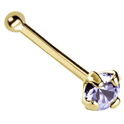 Jewelry Avalanche 22G 14K Gold L-shape Nose Stud with Tanzanite Gemstone Yellow Gold 2mm