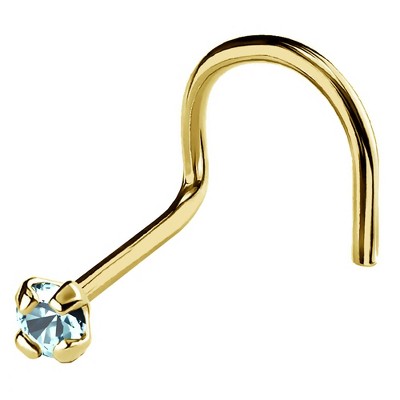Expertly crafted from 14k gold, this 22g Corkscrew nose ring stud features natural round Aquamarines ranging from 1.5mm to 3mm in size. Sleek and stylish, this Aquamarine nose ring adds a touch of elegance to your look while staying securely in place. Upgrade your accessory game with this Aquamarine stud. March birthstone nose stud, a perfect gift for yourself or a loved one