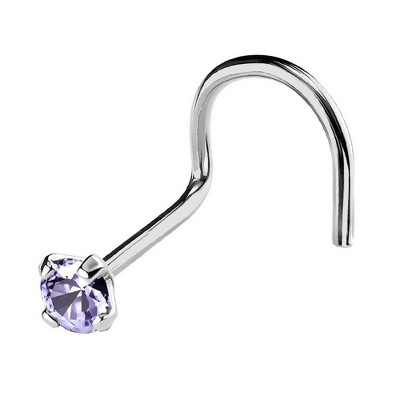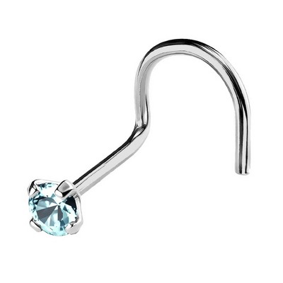Jewelry Avalanche 22G 14K Gold Nose Screw Nose Stud with Blue Topaz Gemstone White Gold 2mm
