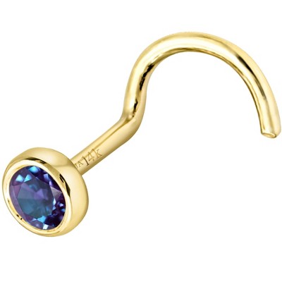 Expertly crafted from 14k Yellow gold, this 22g nose bone nose ring stud features bezel-set round cubic zirconia (CZ) ranging from 1.5mm to 2mm in size. Sleek and stylish, this CZ nose ring adds a touch of elegance to your look while staying securely in place. Upgrade your accessory game with this Bezel-set Moissanite stud. April birthstone nose stud, a perfect gift for yourself or a loved one