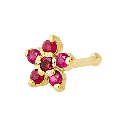 Jewelry Avalanche 22G Solid 14K Gold Ruby Flower Nose Bone Nose Stud