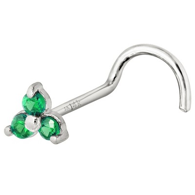 Enhance your nose piercing with our elegant Jewelry Avalanche 3-stone emerald l-bend nose stud. Made of 14K solid gold, this 22G l-shape stud features three sparkling natural emeralds totaling 0.03ctw. Elevate your style with luxury and shine. Sleek and stylish, this emerald nose ring adds a touch of elegance to your look while staying securely in place.