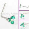 Jewelry Avalanche 3-stone Emerald L-shape Nose Stud 22G Solid 14K Gold