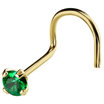 Jewelry Avalanche 3-stone Emerald Screw Nose Stud 22G Solid 14K Gold