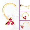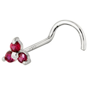 Jewelry Avalanche 3-stone Ruby Screw Nose Stud 22G Solid 14K Gold