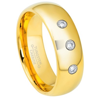 Jewelry Avalanche 5mm Dome Gold Tungsten 3-stone Diamond Wedding Band Men Women - 1 of 3
