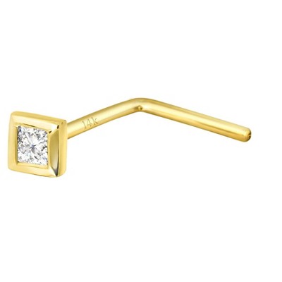 Jewelry Avalanche Bezel Set Princess Cut Moissanite Nose Bone Nose Stud, Solid 14K Gold, 22G