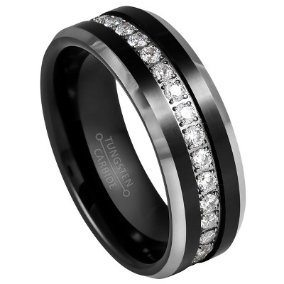 Elevate your style with our Jewelry Avalanche 8mm Eternity CZ Hammered Finish Mens Tungsten Carbide Wedding Band. Made with black ion-plated tungsten, this ring is durable and exudes elegance. Its comfort-fit and the dome design ensure a comfortable fit. Perfect for any occasion, from weddings to everyday wear. Band details: