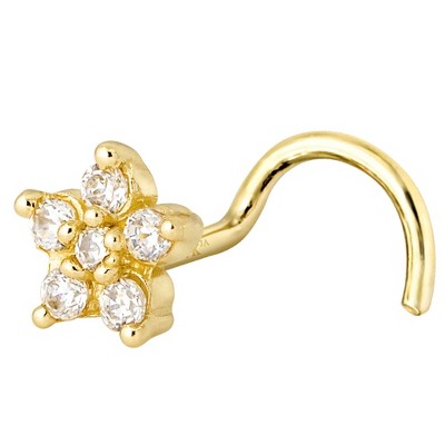 Jewelry Avalanche Ladies 20G 14K Gold Emerald Flower Nose Hoop Ring, 5/16"8mm White Gold