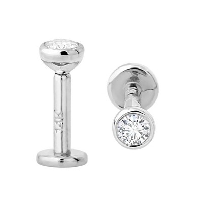 Jewelry Avalanche Unisex 14K Gold Bezel Set 2mm Moissanite Labret Studs, Monroe, Lip Ring, 16G