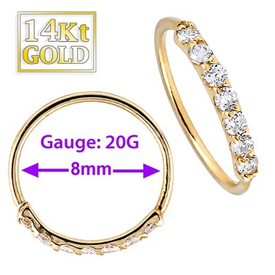 Jewelry Avalanche Unisex 20G 14K Gold Nose Hoop Ring with Diamonds, 8mm Diameter, Twist-open Rose Gold