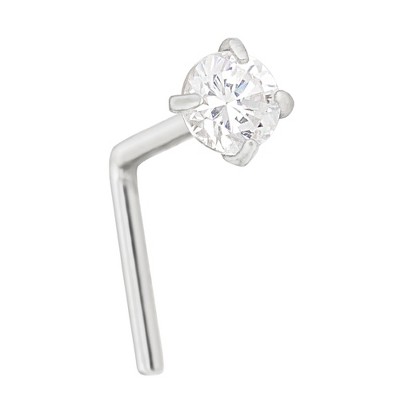 Jewelry Avalanche V-Prong Set Princess Cut Moissanite L-Shape Nose Stud, Solid 14K Gold, 22G