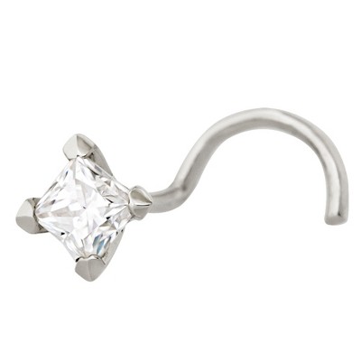 Jewelry Avalanche V-Prong Set Princess Cut Moissanite Nose Bone Nose Stud, Solid 14K Gold, 22G