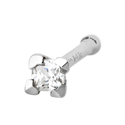 Jewelry Avalanche V-Prong Set Princess Cut Moissanite Nose Screw Nose Stud, Solid 14K Gold, 22G White Gold 1.5mm