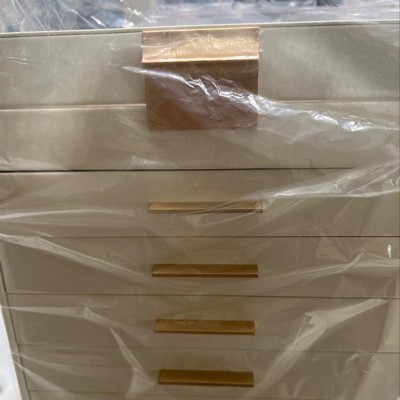 Item looks great, but is low quality. Drawers don't close flush and when I opened the bottom drawer, the entire front panel detached from it. The fronts are all just loosely glued in place. Item will work for me, but don't expect high quality. Not sure how long it will last.