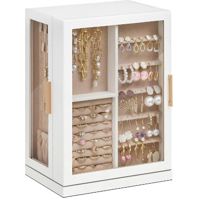 Jewelry Box Organizer with Glass Lid, 3-Layer Jewelry Storage, with 2 Drawers, Modern Style Laurel Green + Gold-4 Layer 8"D x 9.1"W x 5.3"H